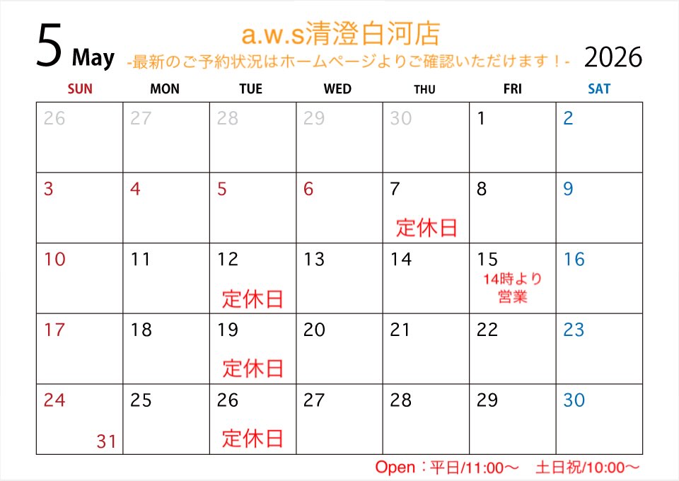 ◆開催時間 【a.w.s清澄白河店カレンダー】から確認いただけます。